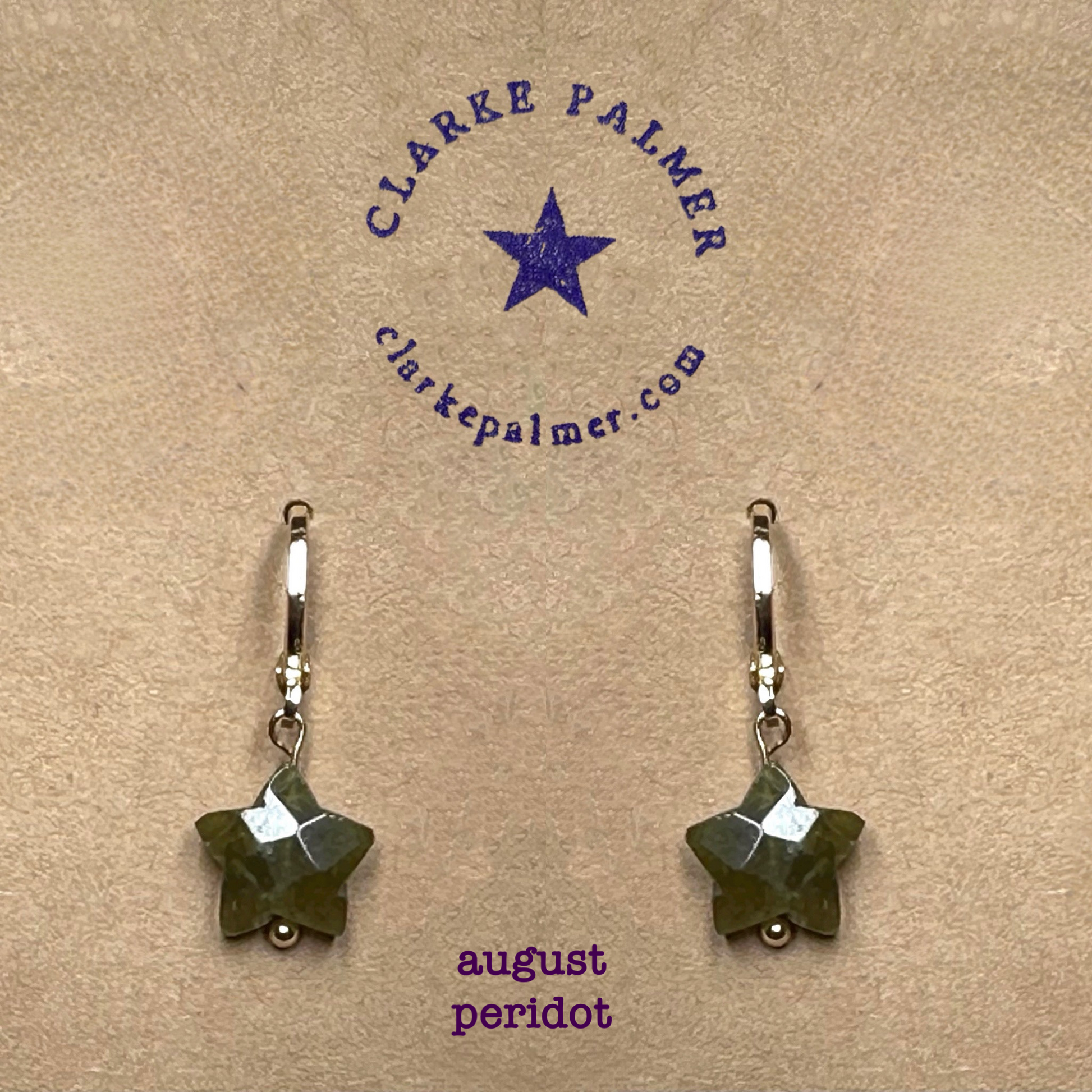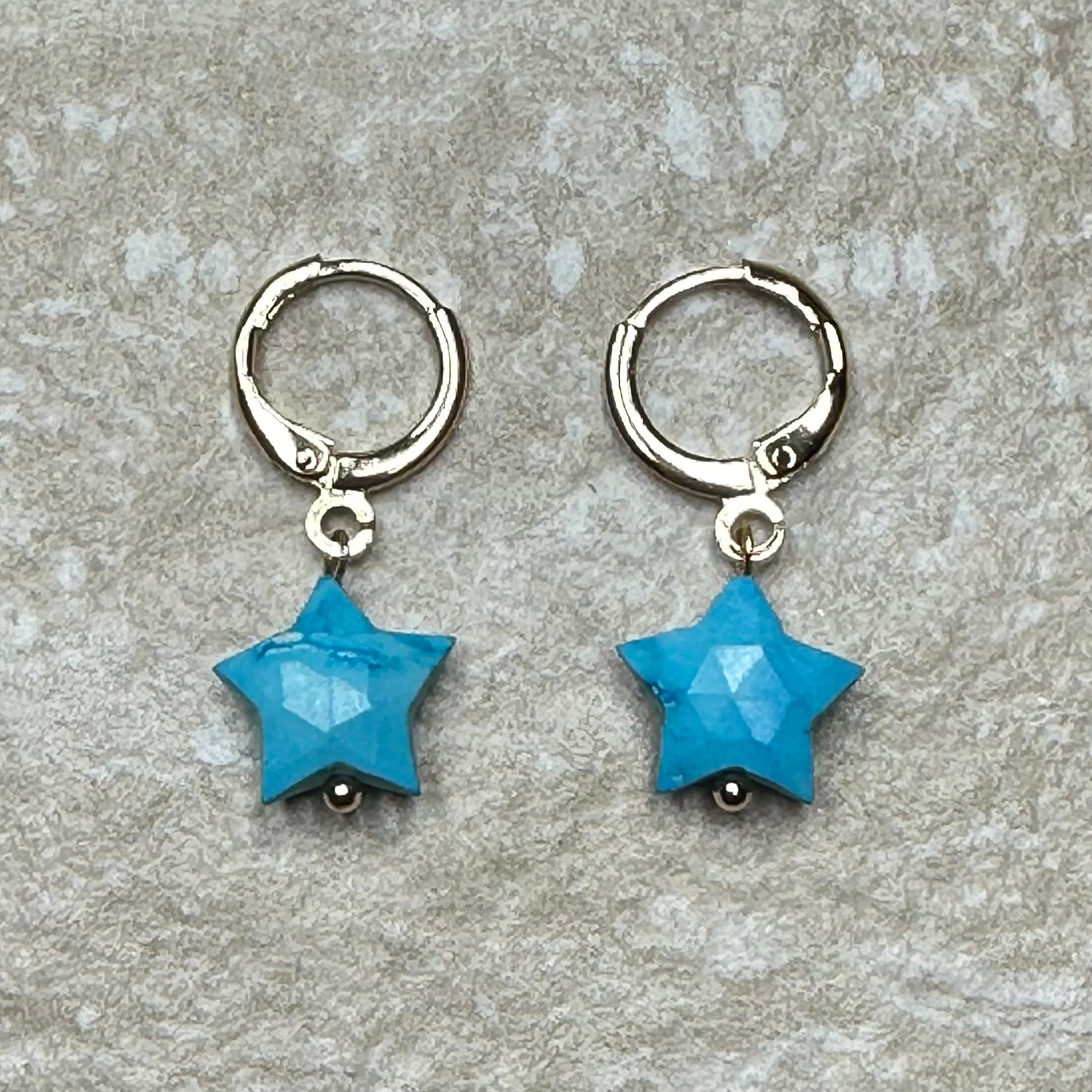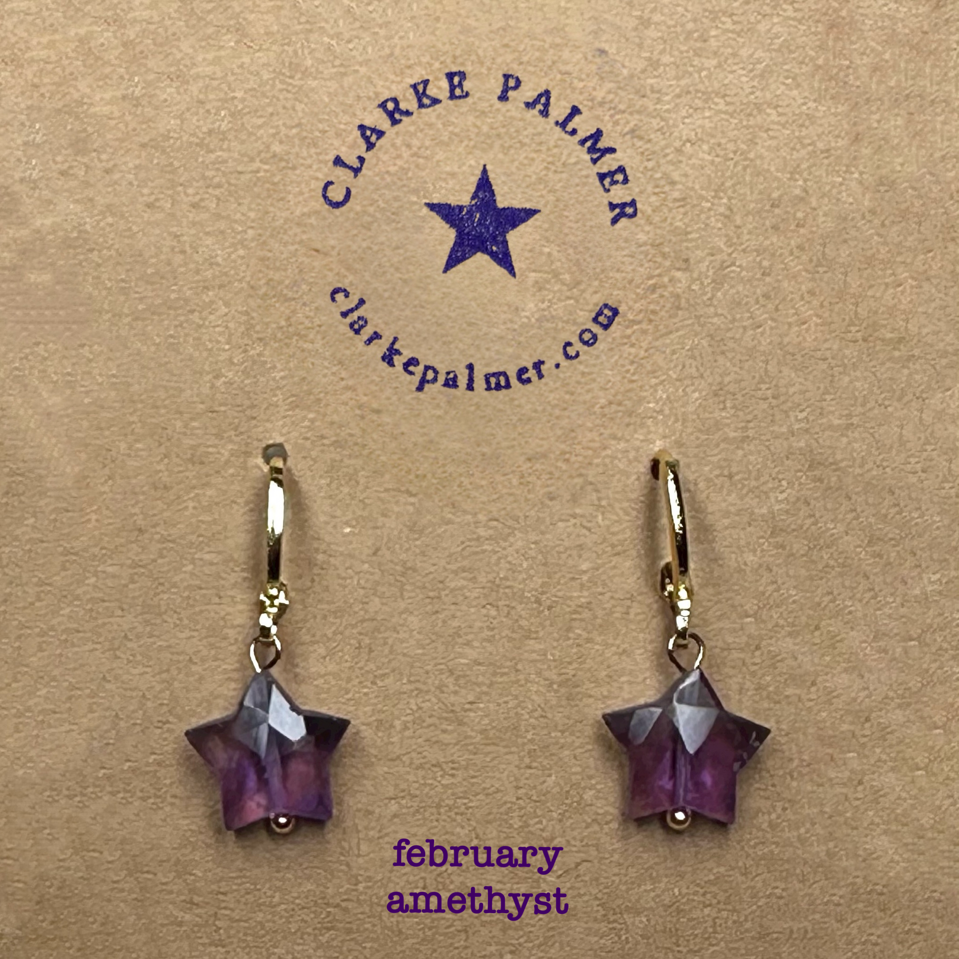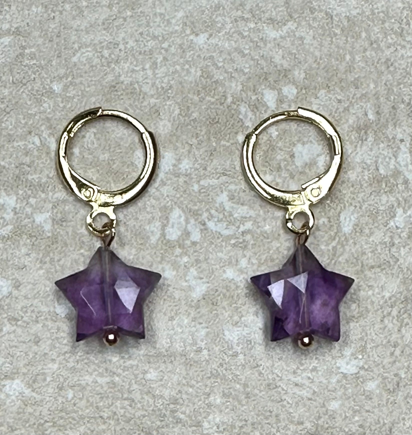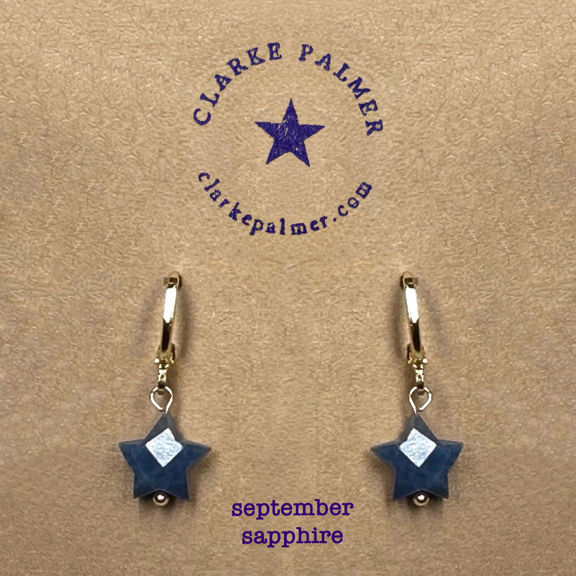 Hand made from sustainably sourced hand cut real gemstone faceted stars. Choose your gemstone and from 22kt gold vermeil hoops; CZ multi rainbow coloured 22kt gold vermeil hoops; or silver vermeil hoops in the options.