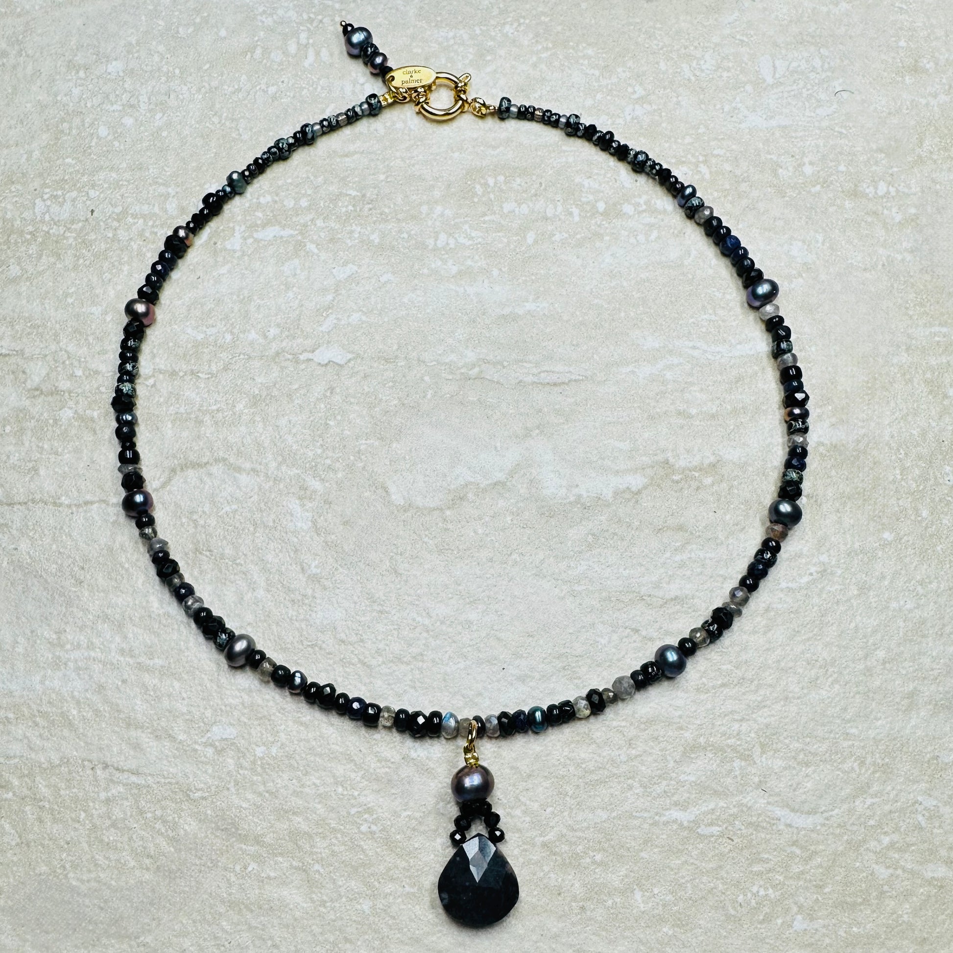 Black Pearl Spinel & Moonstone Pendant Necklace