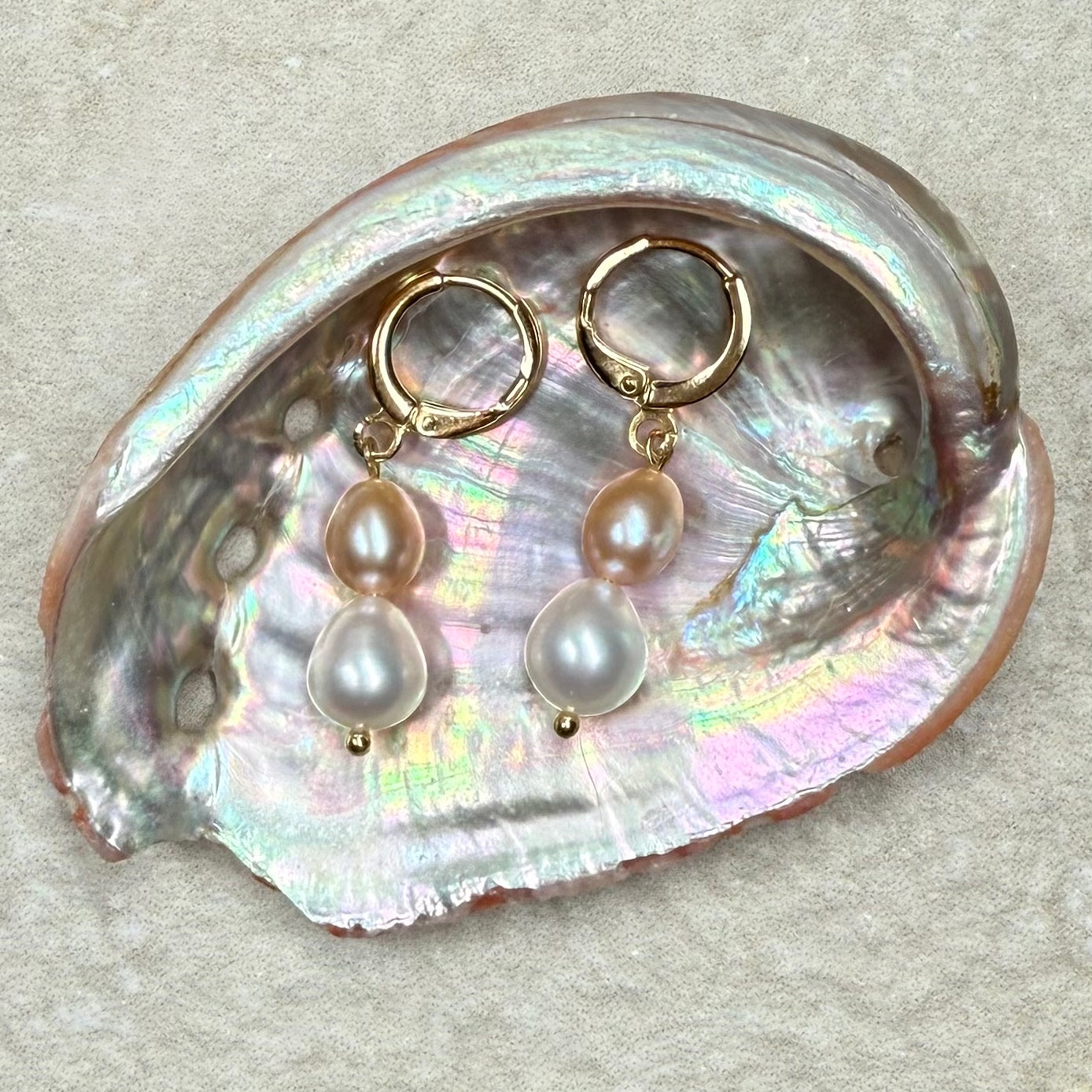 These beautiful earrings are part of our Pearl Collection and will blend perfectly with your favourite jewellery. Handmade from real oval pink pearls and ivory teardrop pearls they make a unique gift to treat yourself, loved ones or family for a special birthday or anniversary.