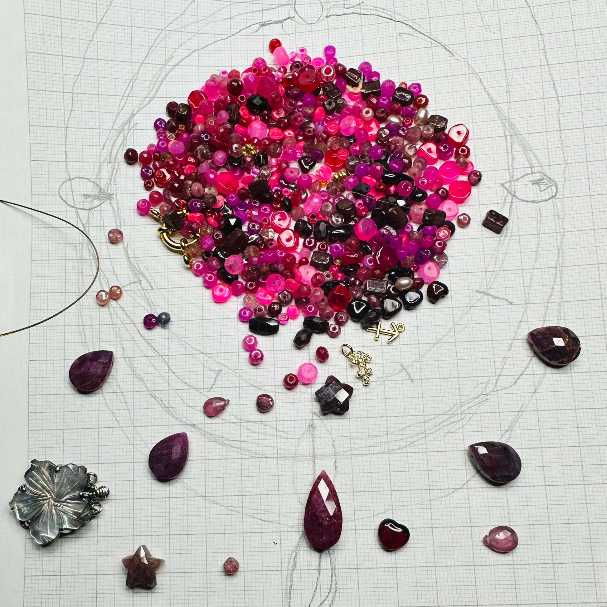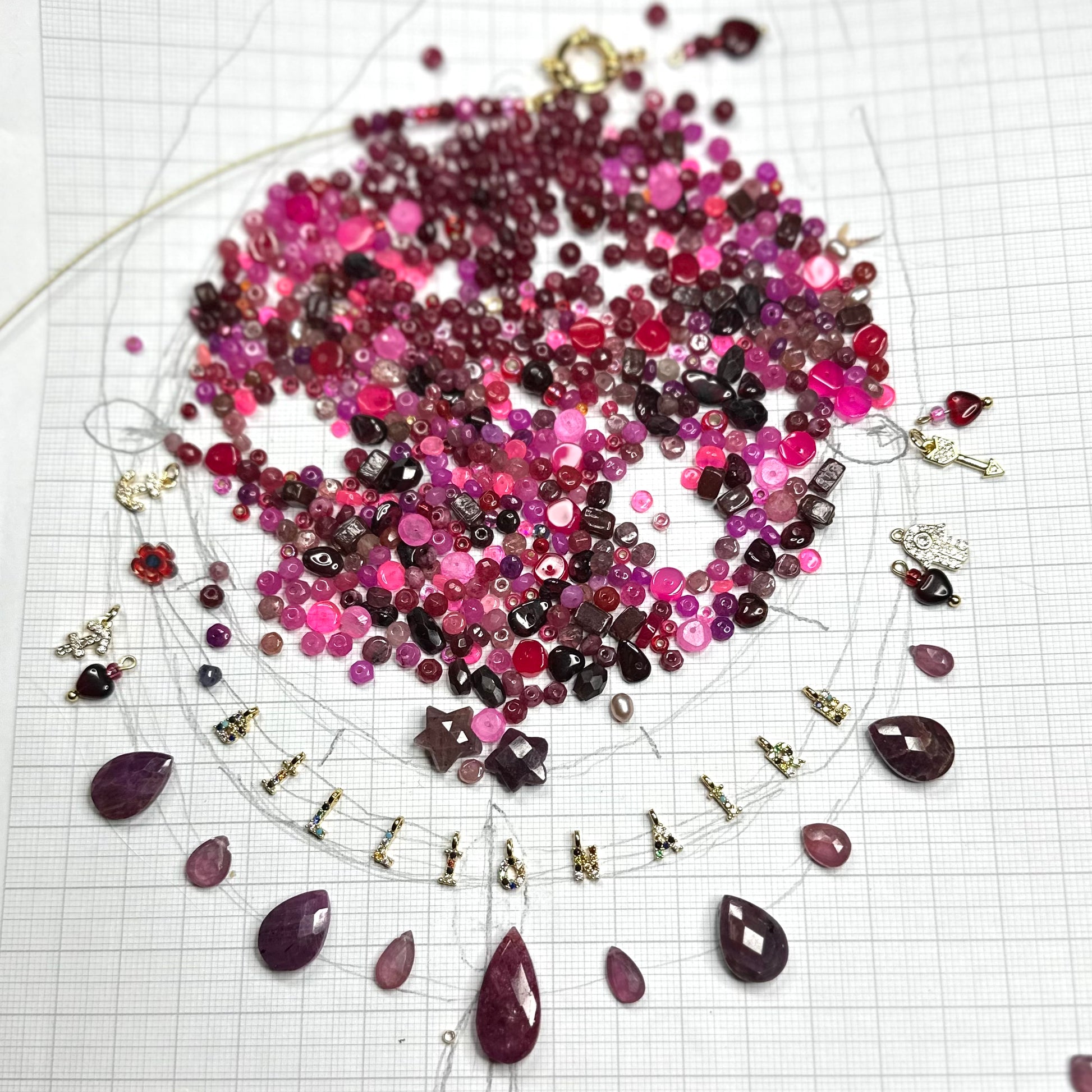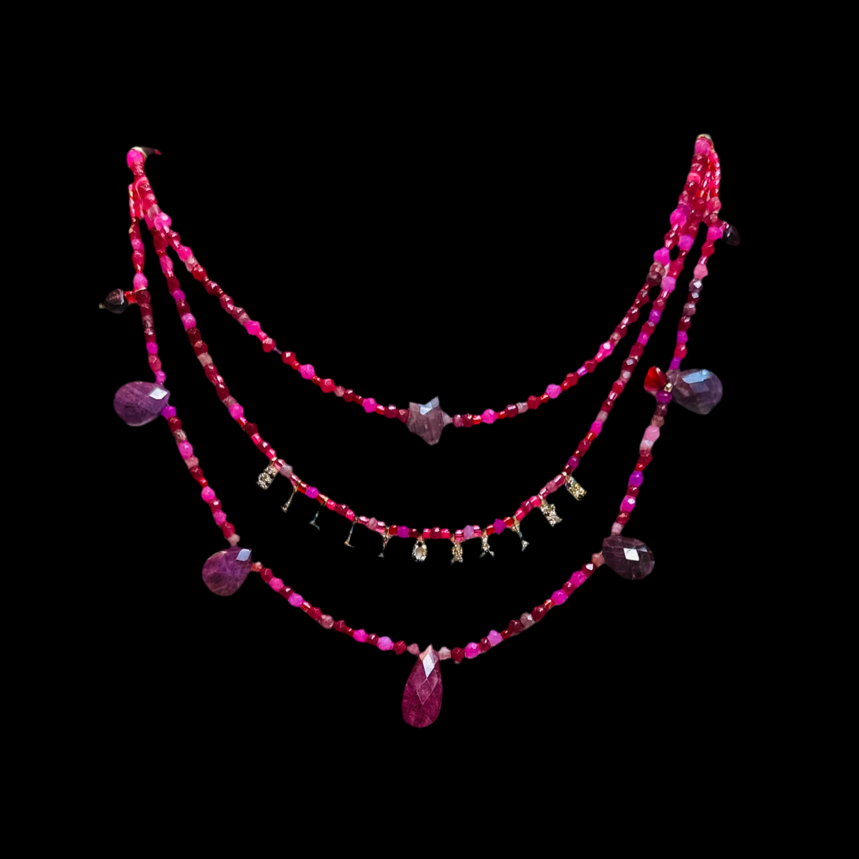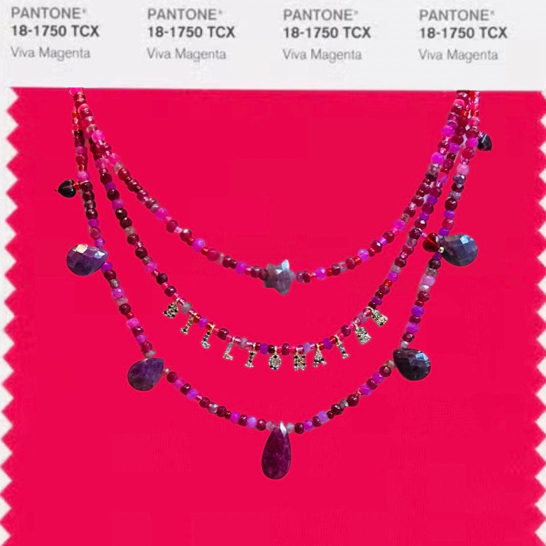 Given on the occasion of the full moon in Gemini 7 November 2022 this necklace has magic in it. The deep red and magenta shades represent the root chakra and also the Pantone Shade