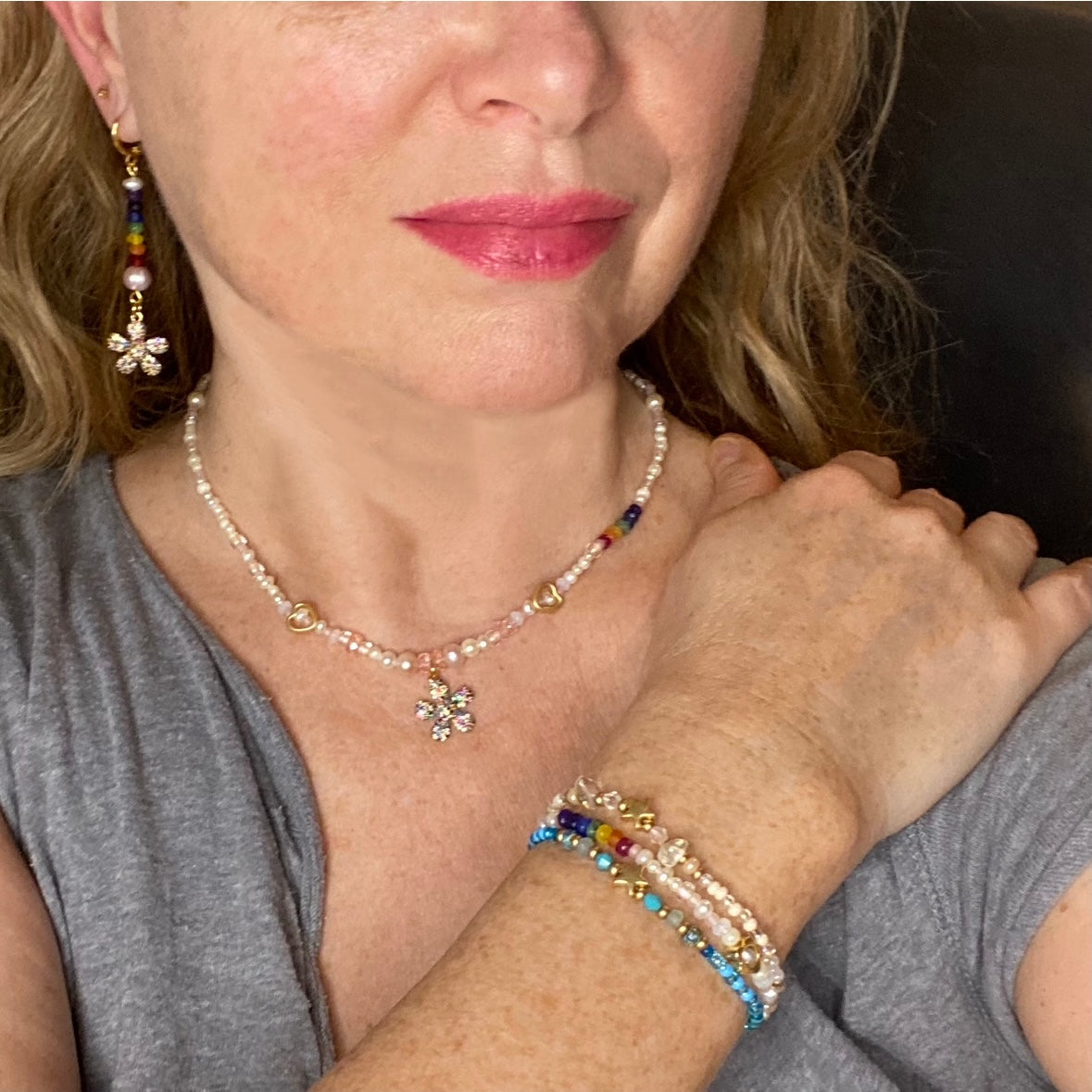 Daisy, Pearl and Precious Rainbow Earrings