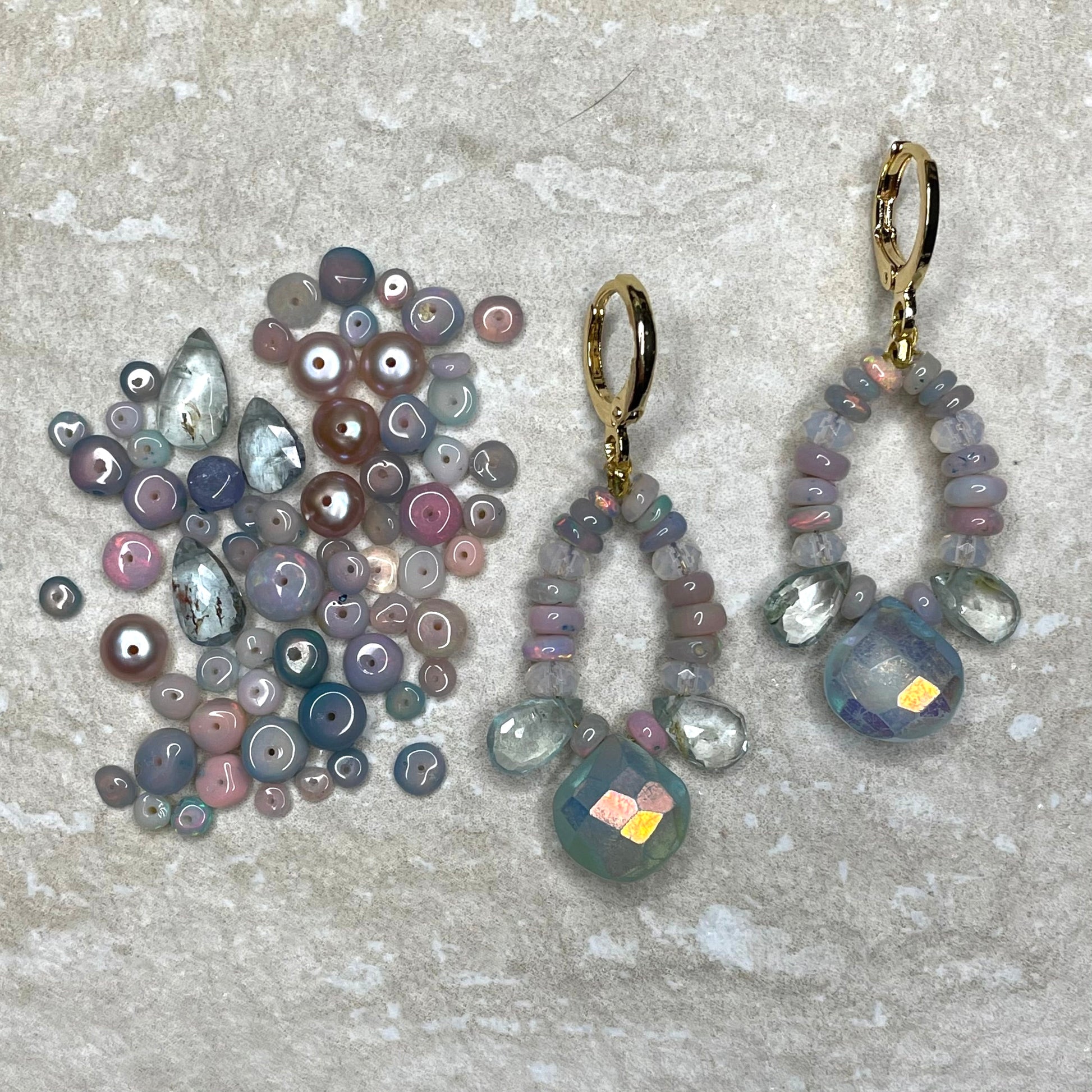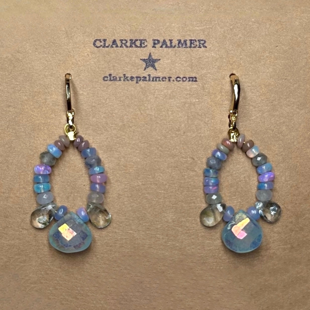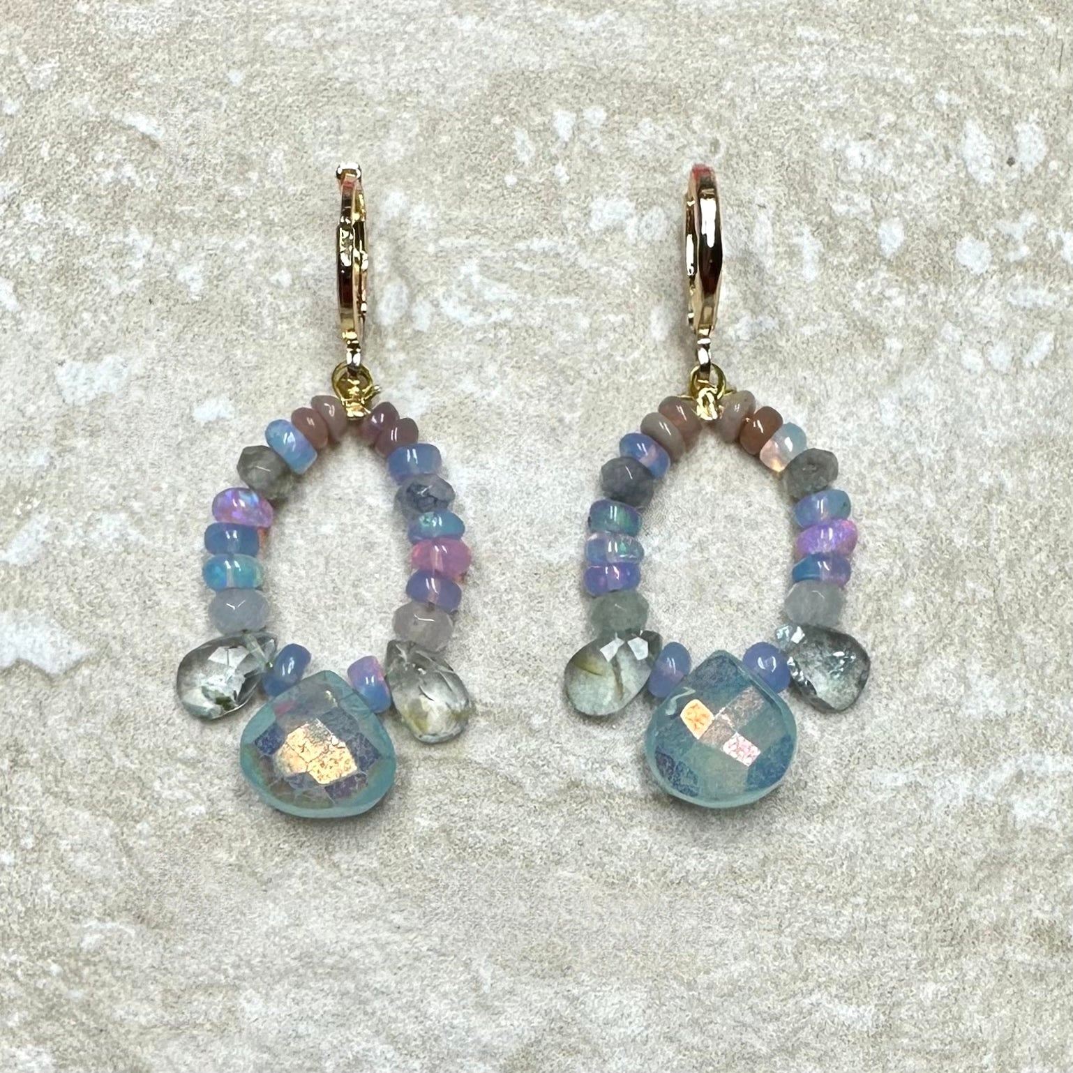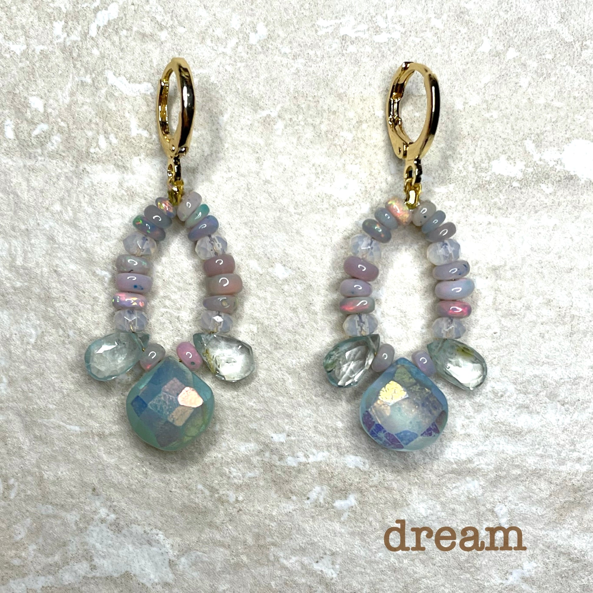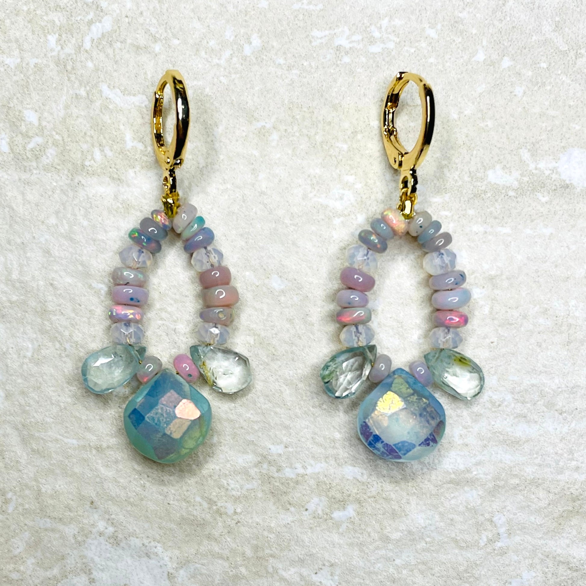 Part of our Precious Elements Collection, these 'Dream' earrings are handmade from precious metal coated aquamarine and lilacy pink glowing Ethiopian opal.