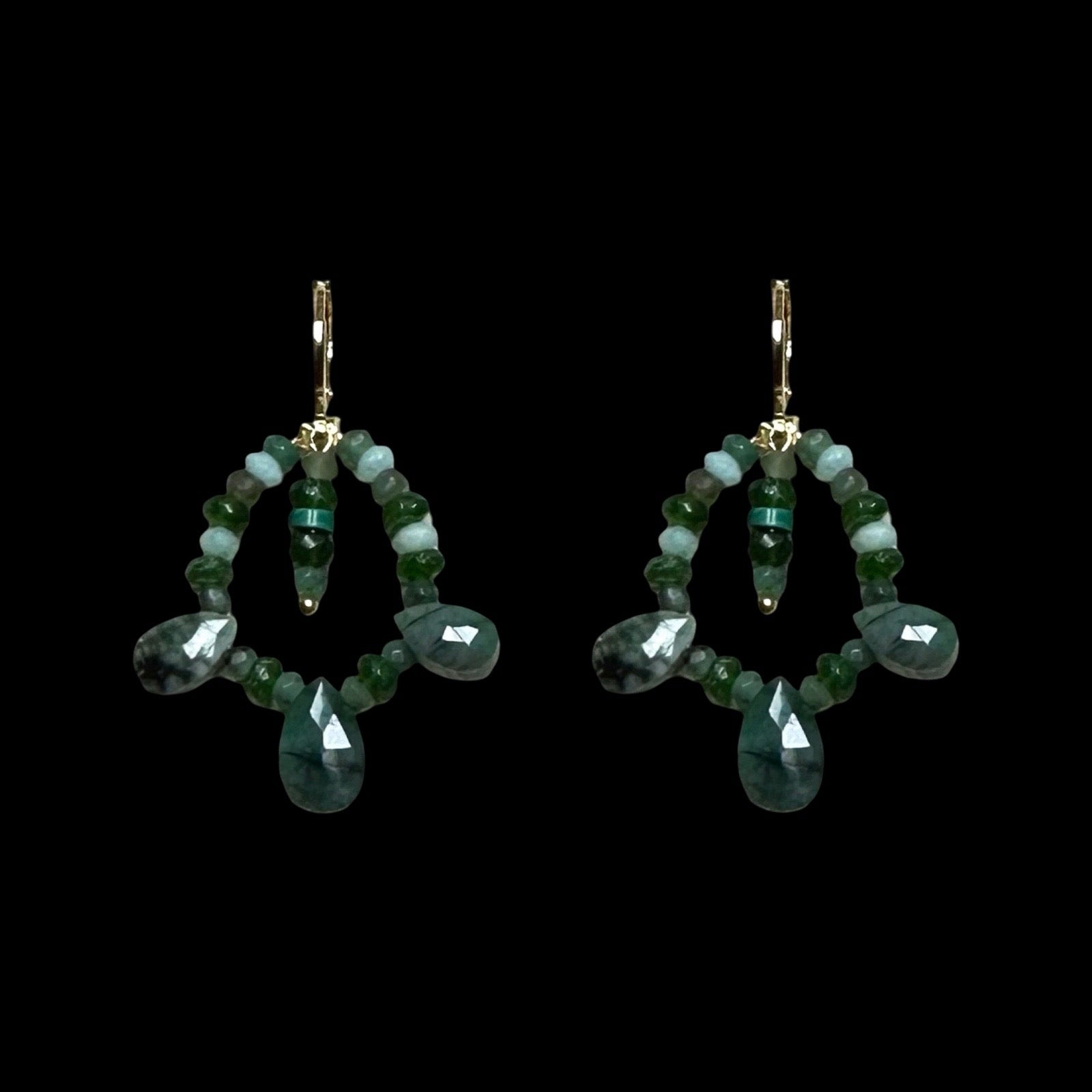 Part of our Precious Elements Collection, our stunning Emerald chandelier earrings are handmade from emerald, green apatite and malachite rondelles, with emerald faceted teardrops, and emerald internal drops.