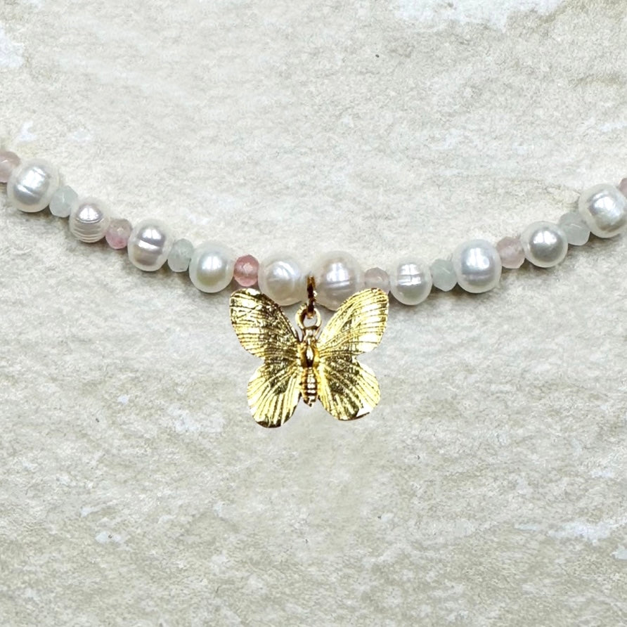 Pearl Charm Butterfly Pendant Necklace