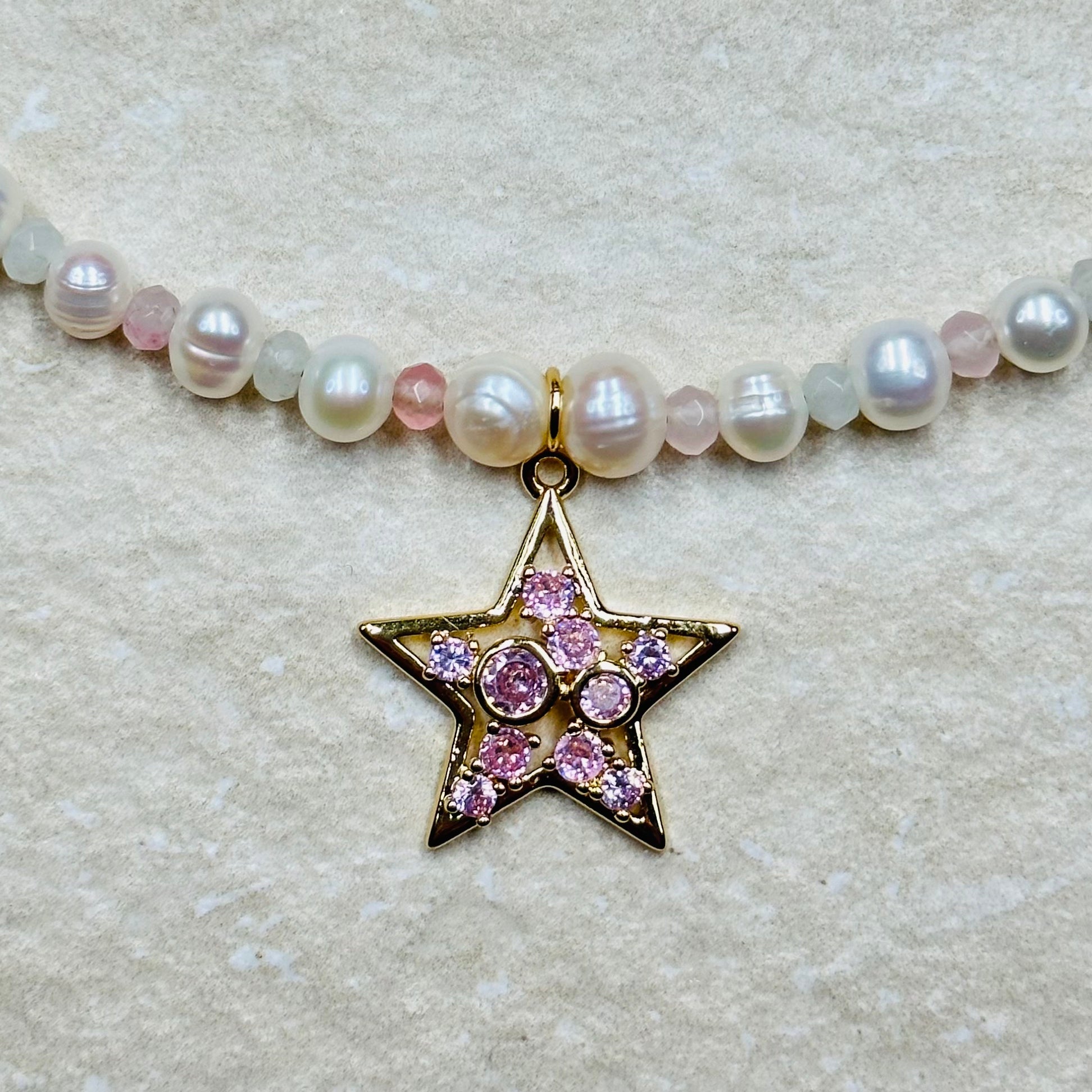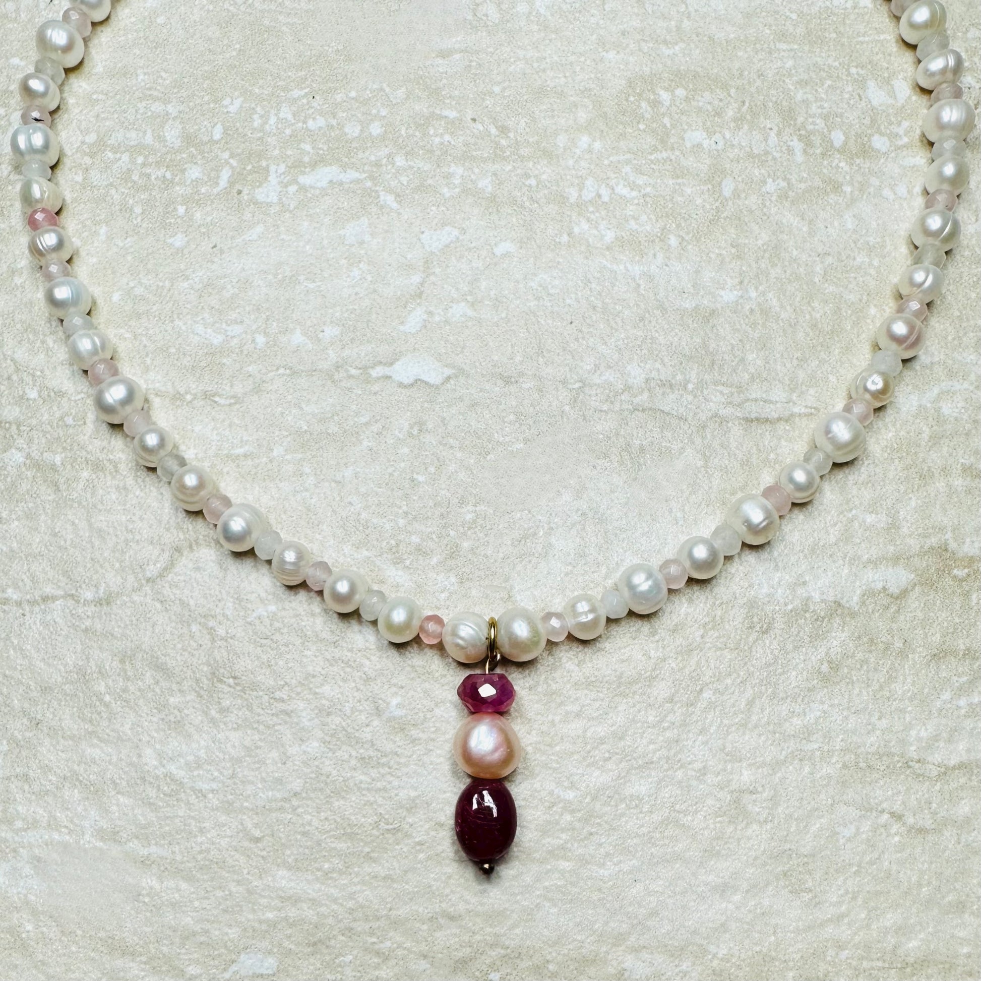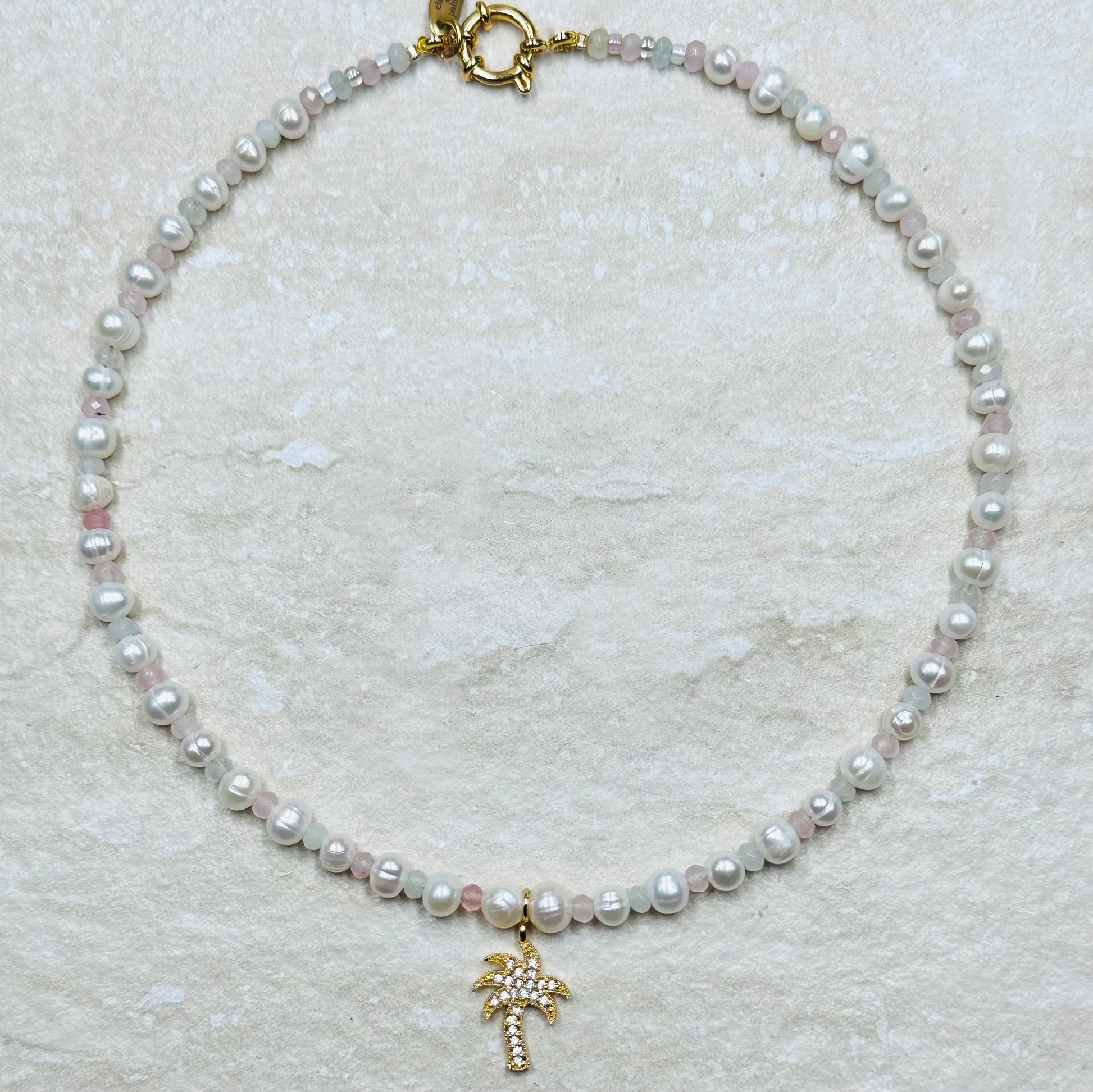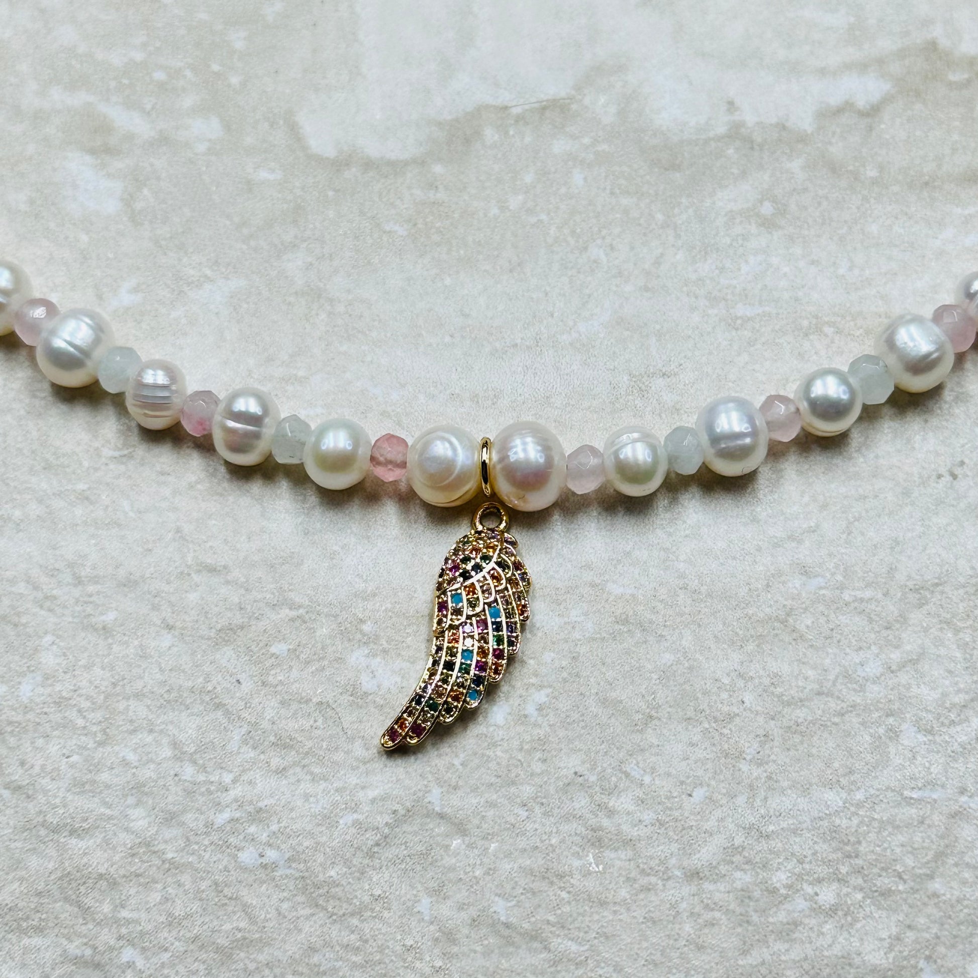 This Necklace is handmade in real ivory pearls interspersed with palest pink and ivory faceted agate rondelles and centred by your choice of 24 kt gold vermeil charm pendant. Our pearls are sustainably sourced from Japan. It has a 24 kt gold vermeil lobster clasp. It is adjustable in length from 40 - 44 cm.