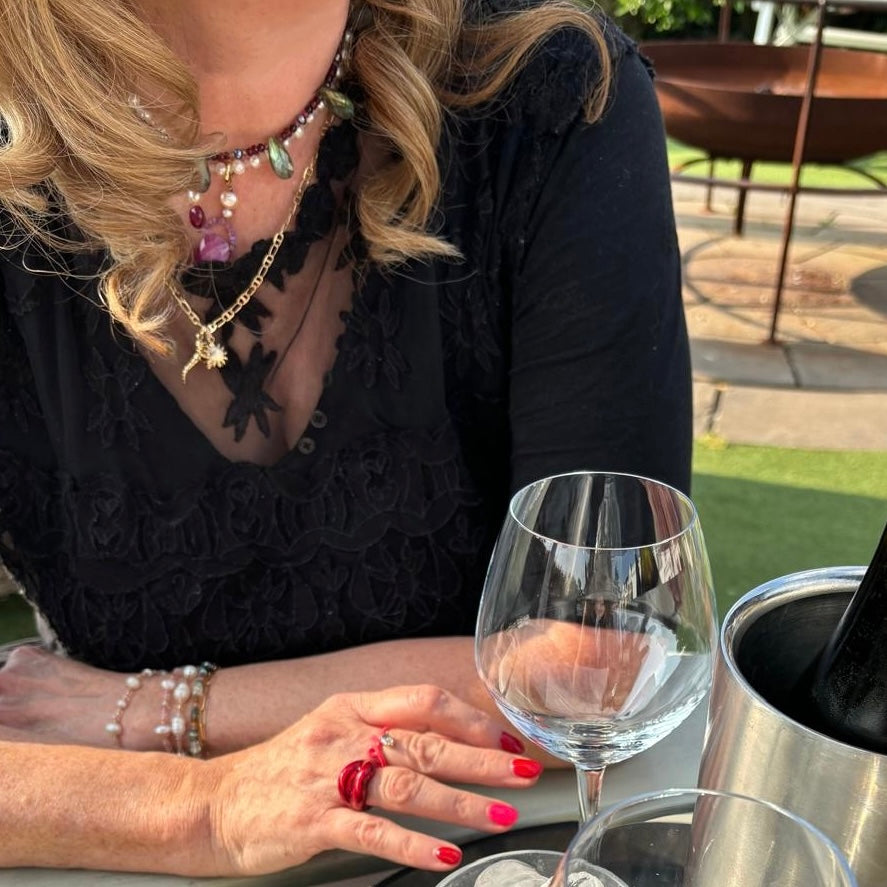To find your size either measure a necklace you wear regularly that is your desired length or put a piece of ribbon or string around neck at that length and mark at join. Lay flat and then measure length.