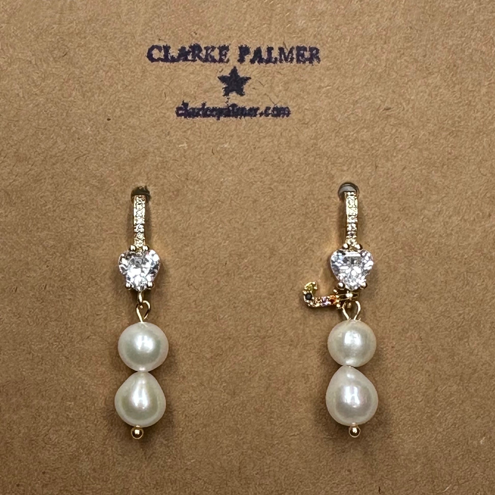 These beautiful earrings are made with ivory round pearls, teardrop shaped pearls set on a 24kt gold vermeil CZ heart. Personalise for yourself or person you are gifting with 24kt gold vermeil cz letter.