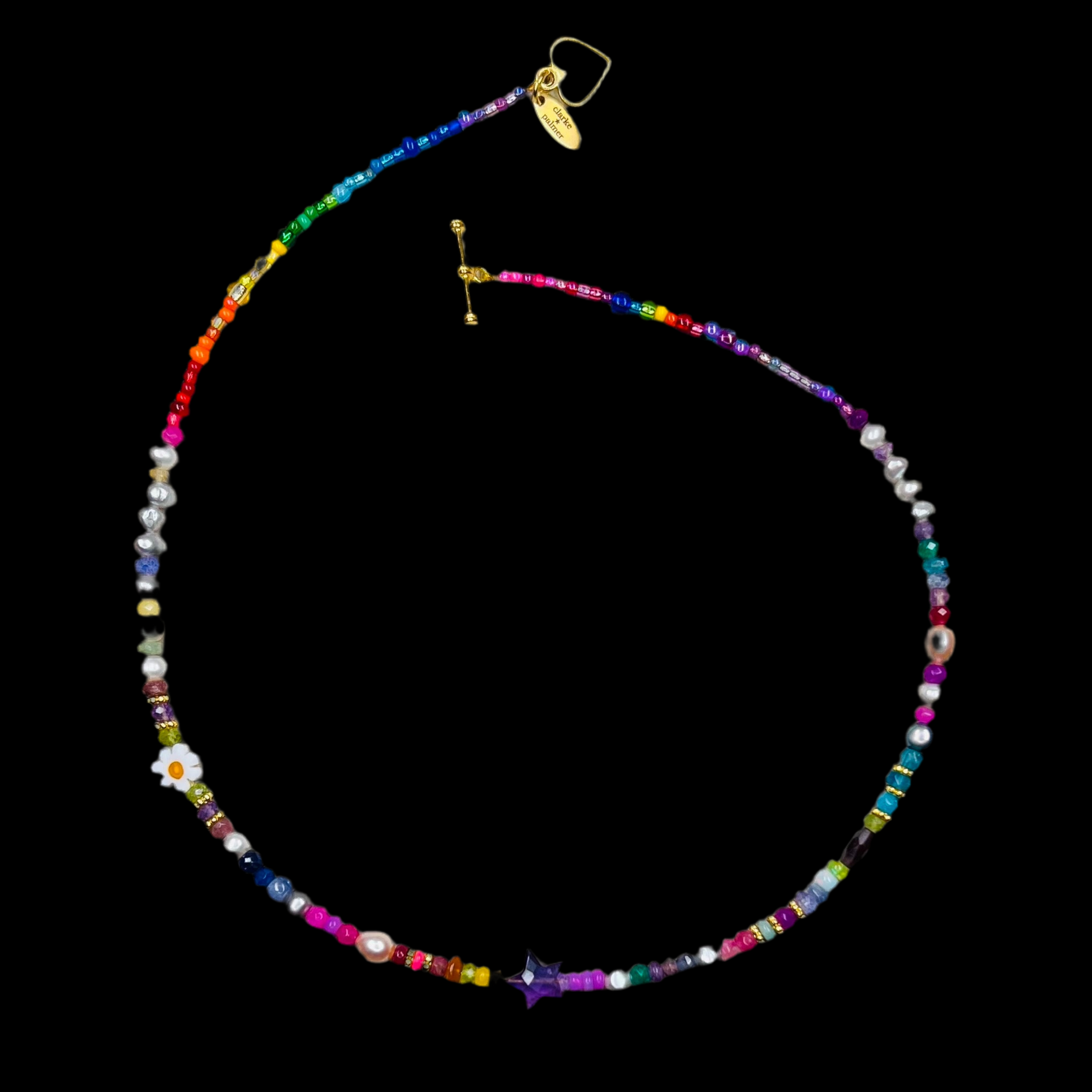 The stunning rainbow tones of this necklace can help support the all of the Chakras. Read about these in this link: https://clarkepalmer.com/collections/chakra-jewellery