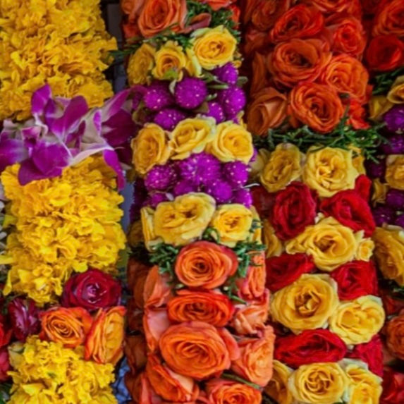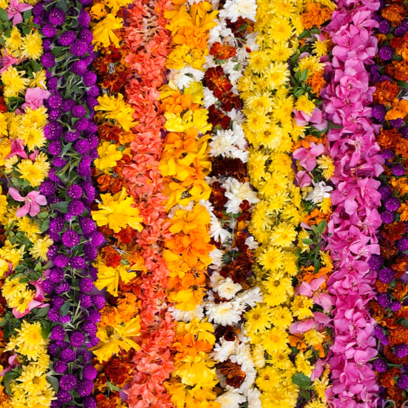 It’s design was inspired by the intricately made flower garlands exchanged by bride and groom in Hindu weddings. Handmade from fragrant roses, spider lilies, frangipani, paras, jasmine, and marigolds these garlands are known as varmalas, jaimalas or simply malas.