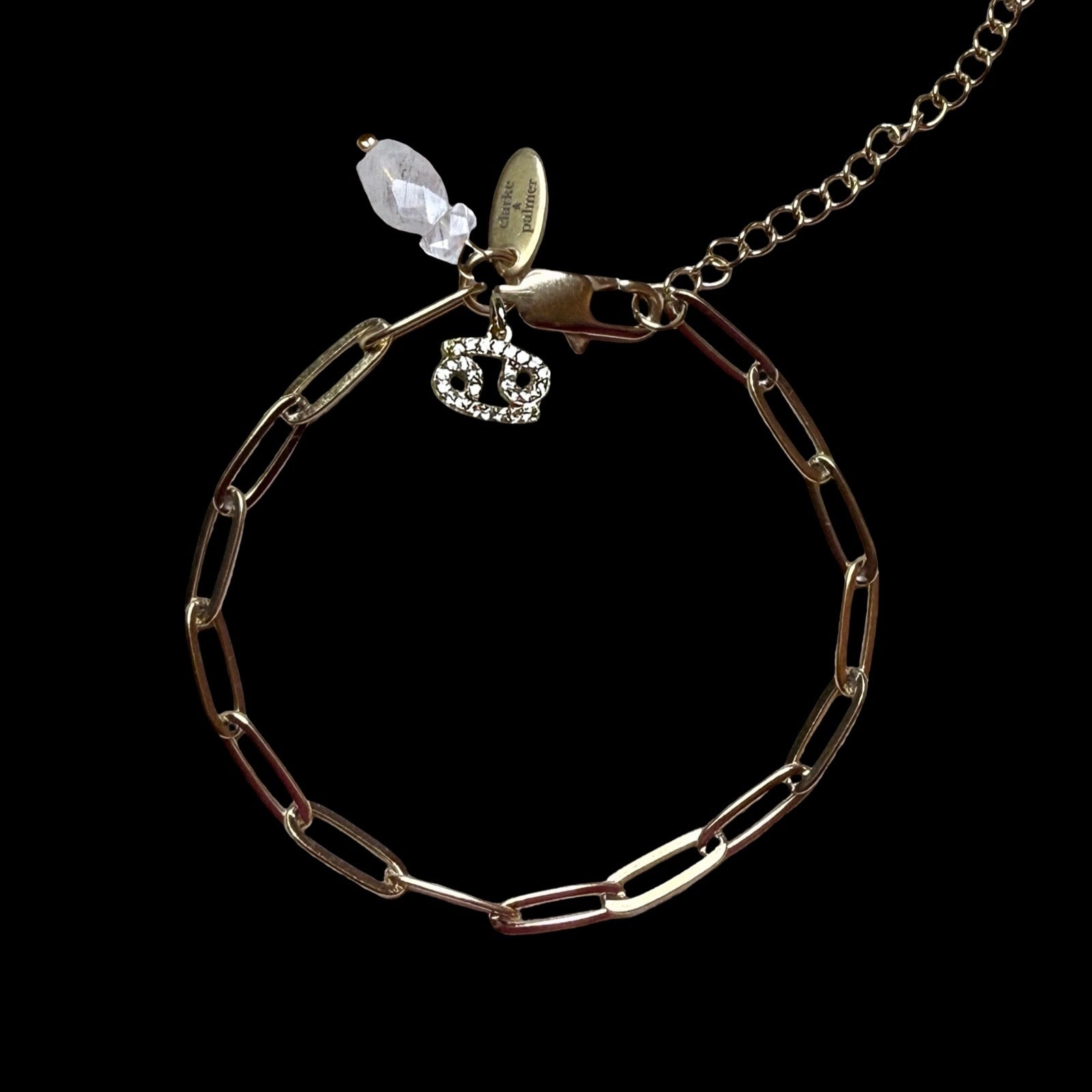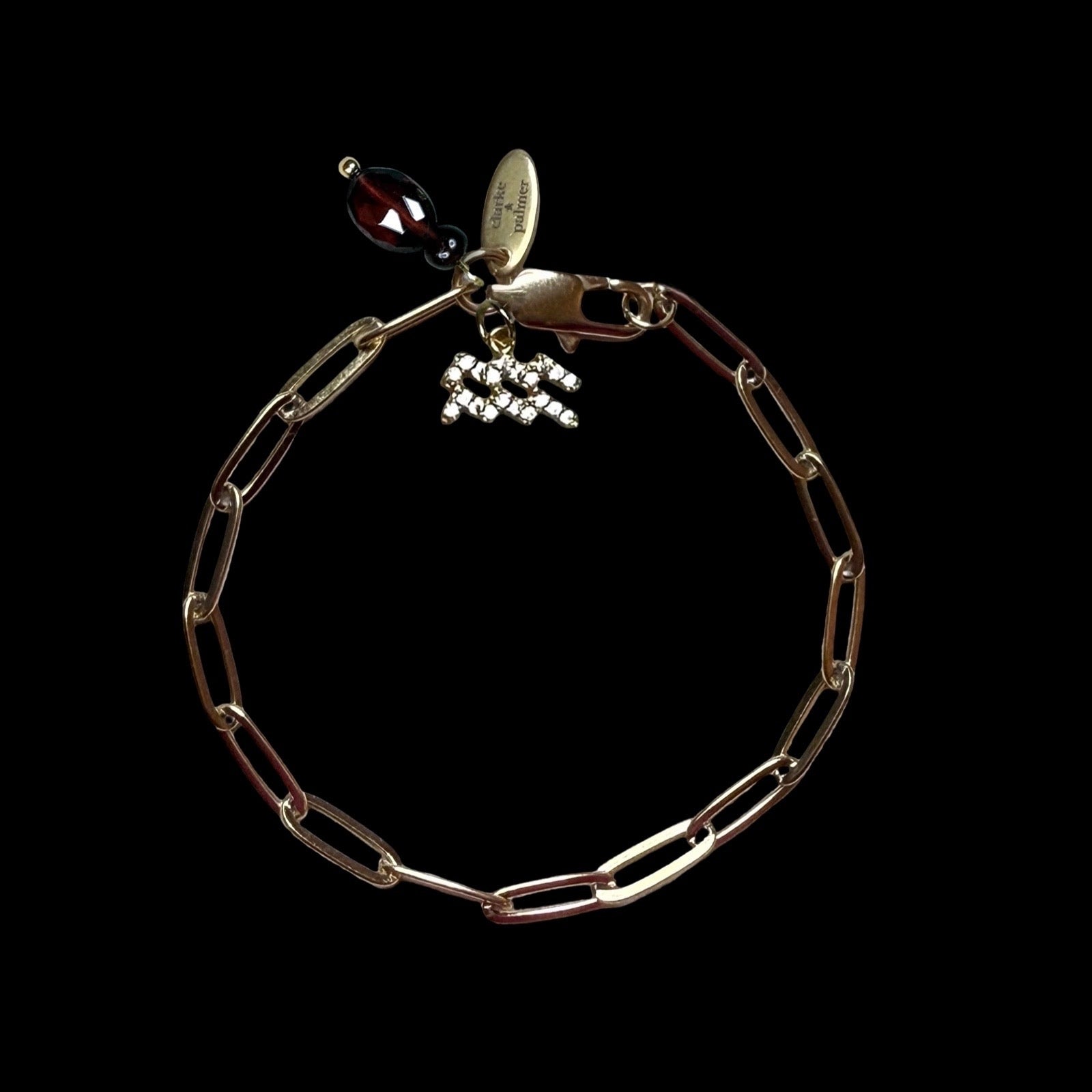 Handcrafted from a contemporary 22kt gold vermeil paperclip chain, this bracelet features a birthstone charm and star sign charm chosen according to your birth-date alignment. An optional initial charm adds a personal finishing touch.