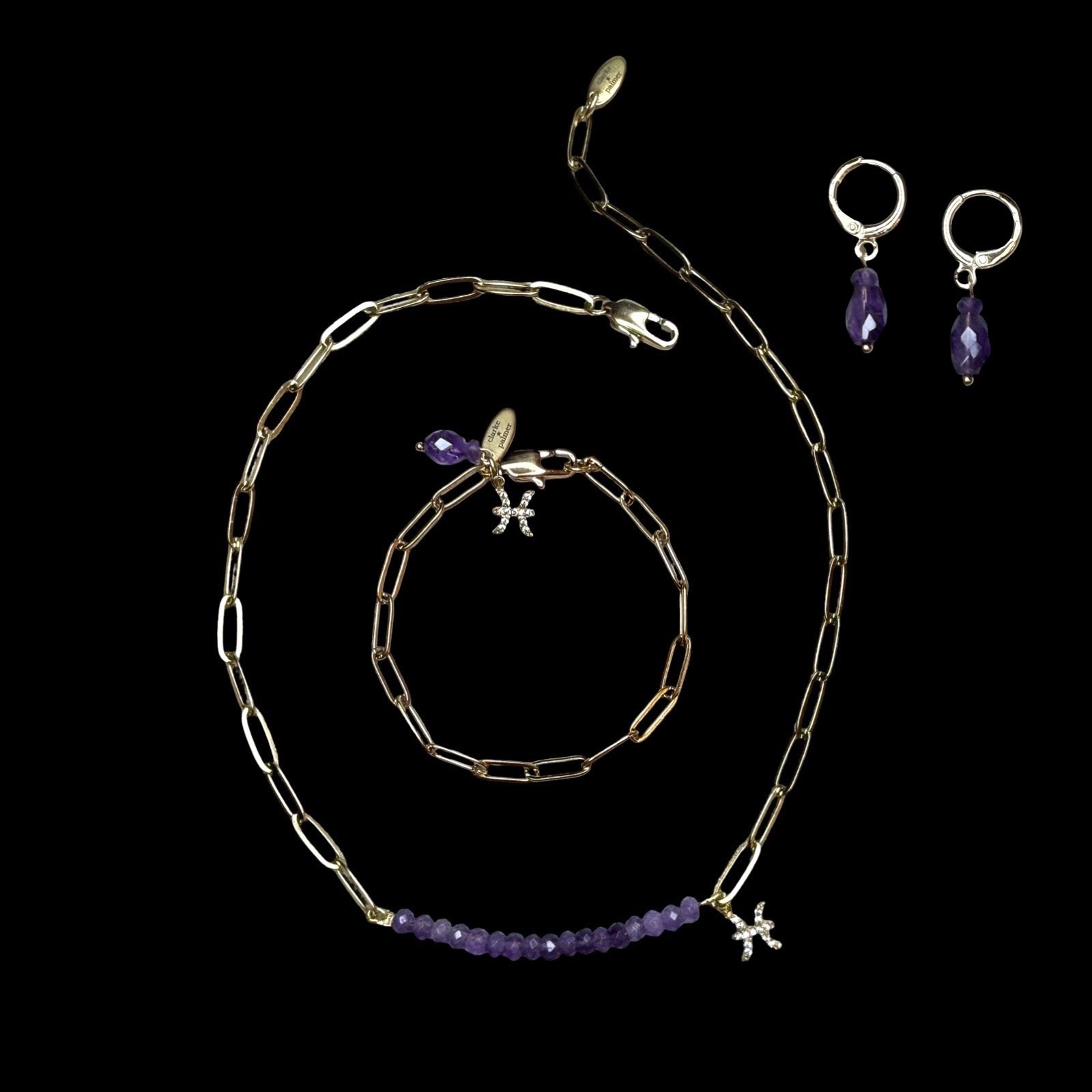 This is the Star Sign & Birthstone Necklace - Inlay Edition (Normally £90) and bracelet (normally £45) and beautiful birthstone earrings (normally £35) to complete the trio.