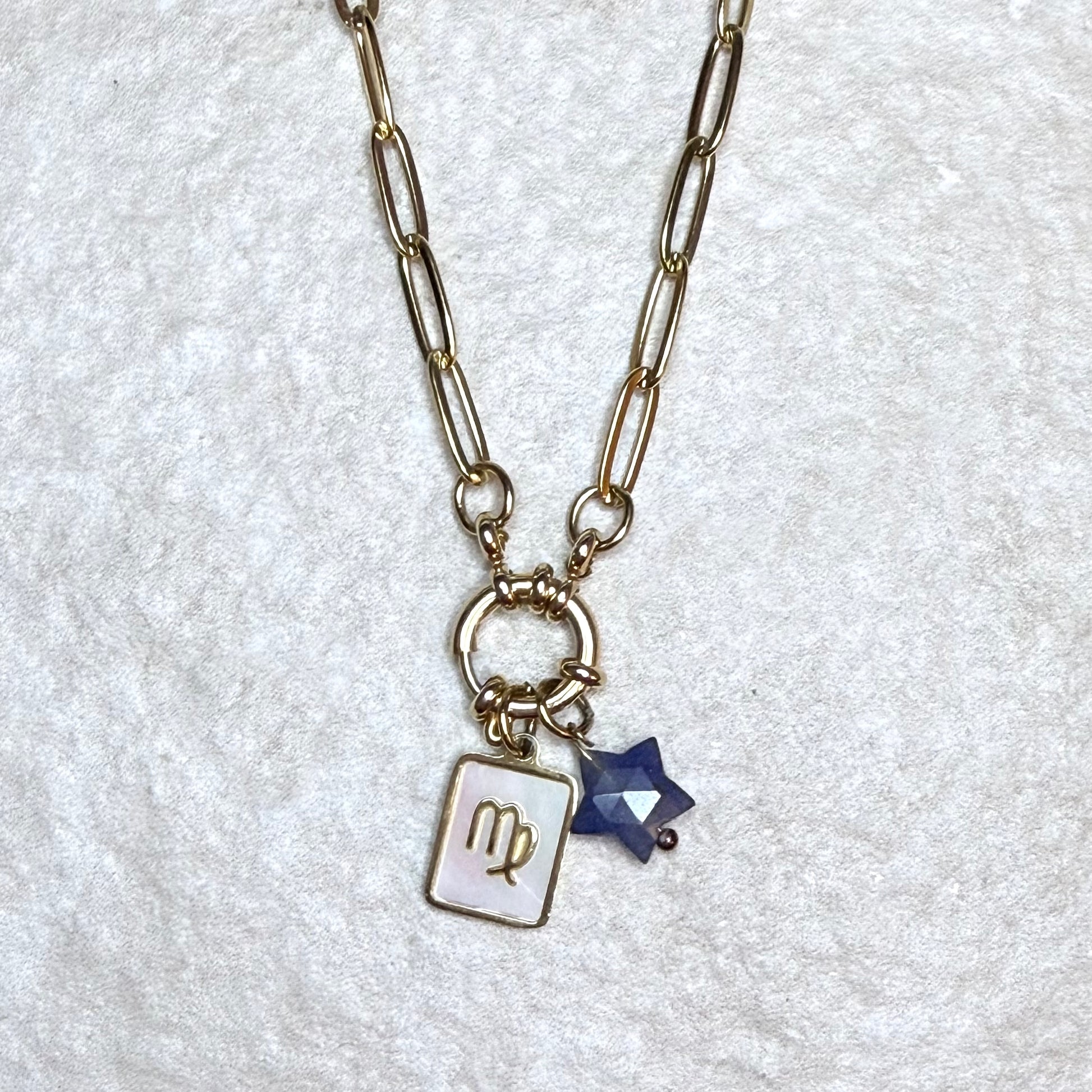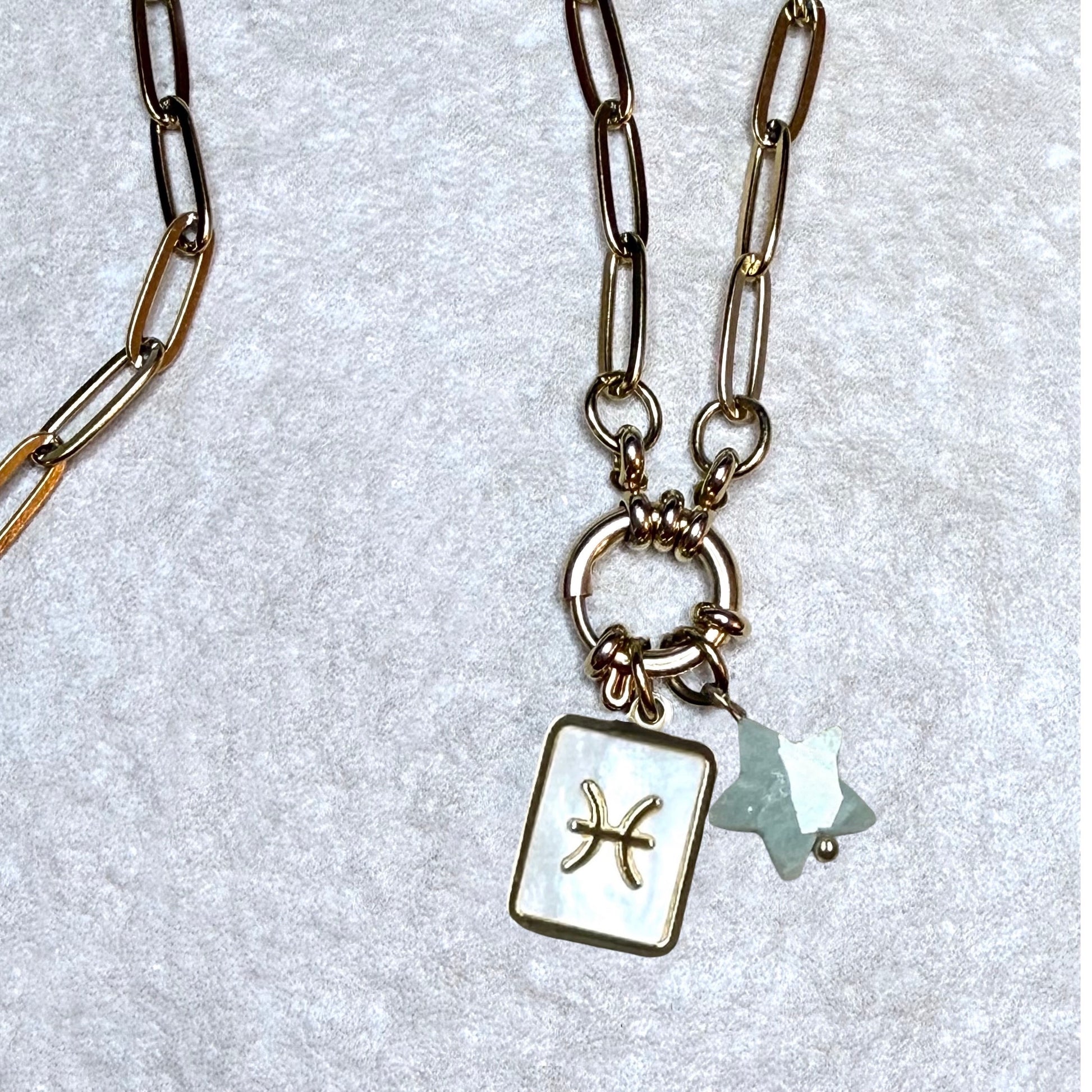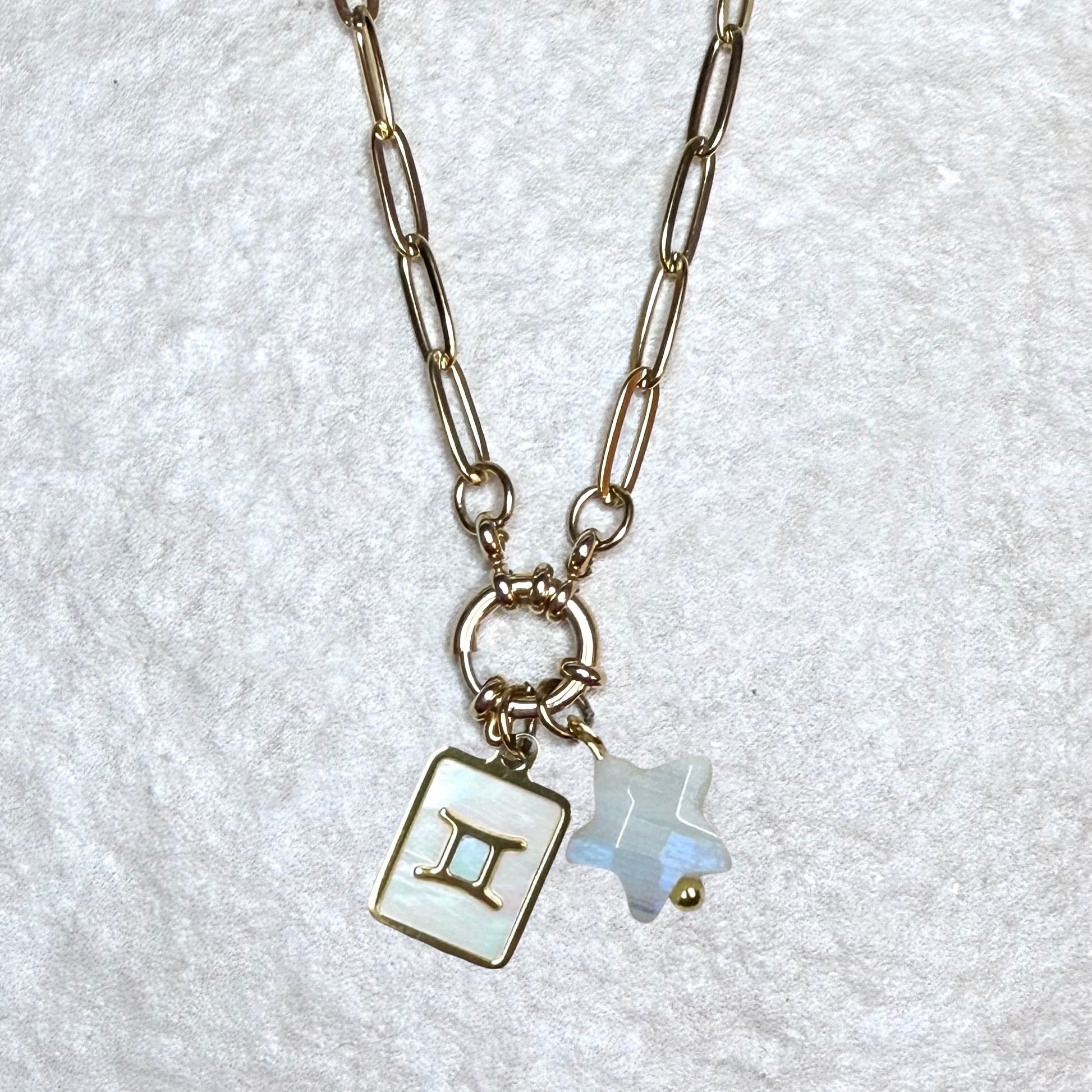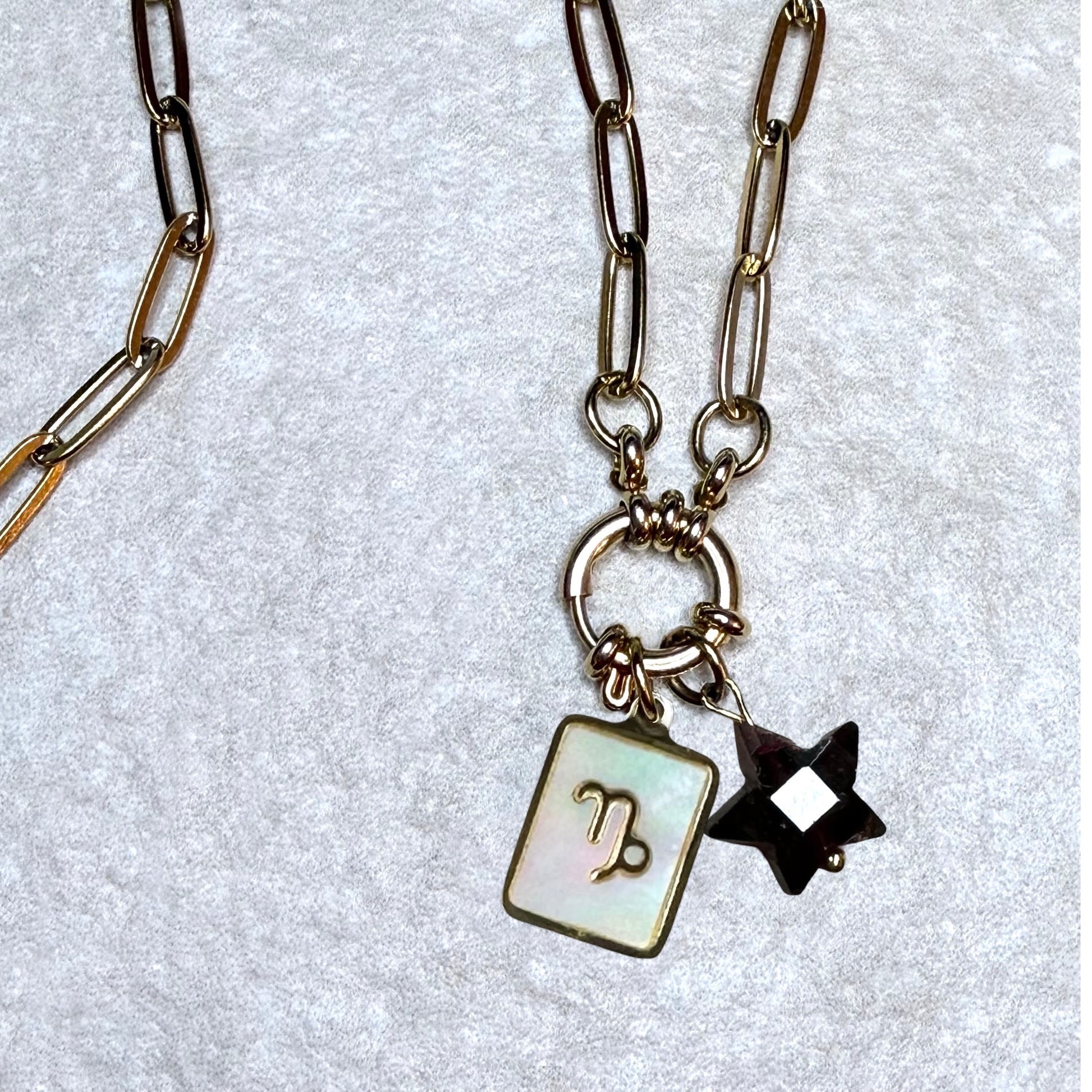Star Sign & Birthstone Necklace (Statement Paperclip Chain)