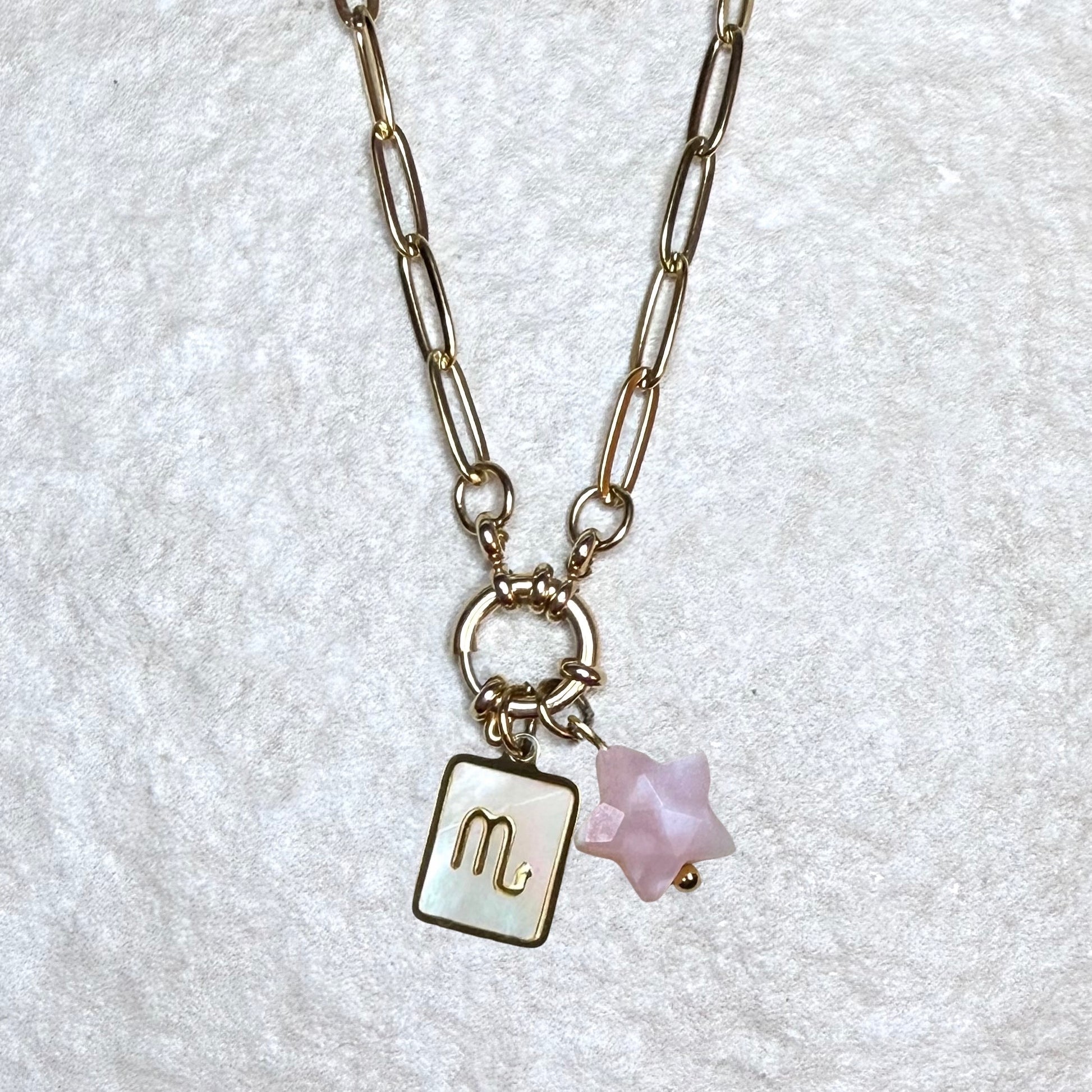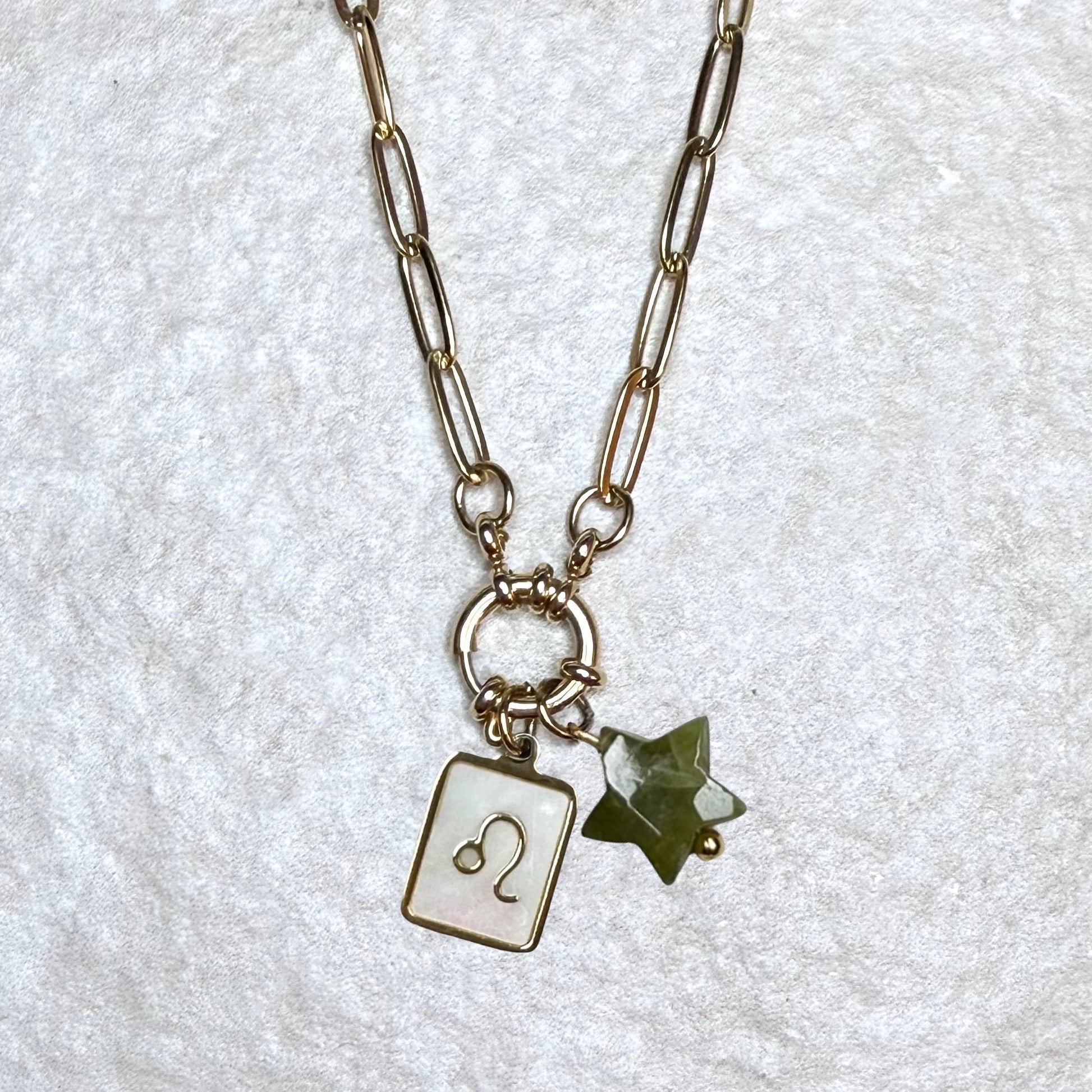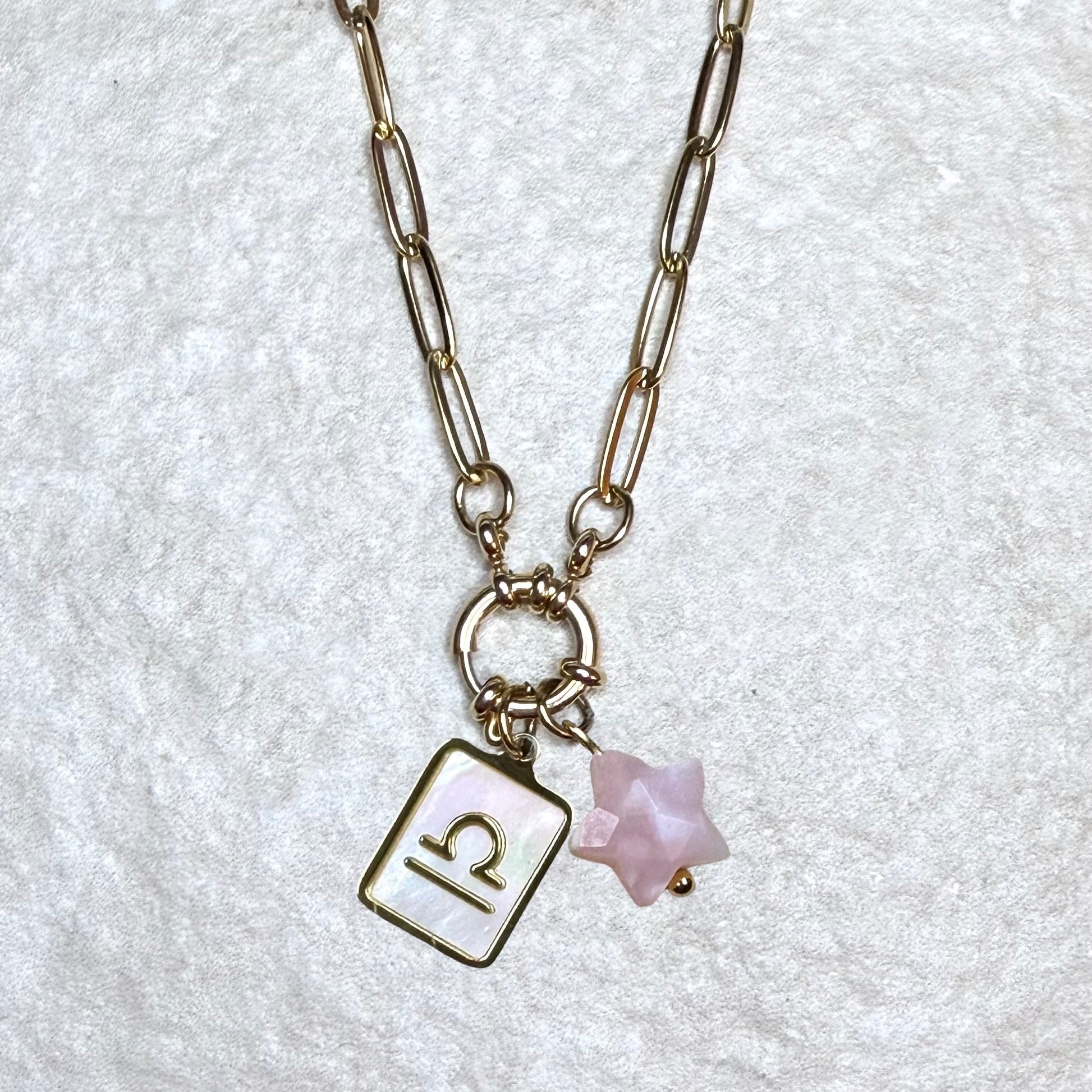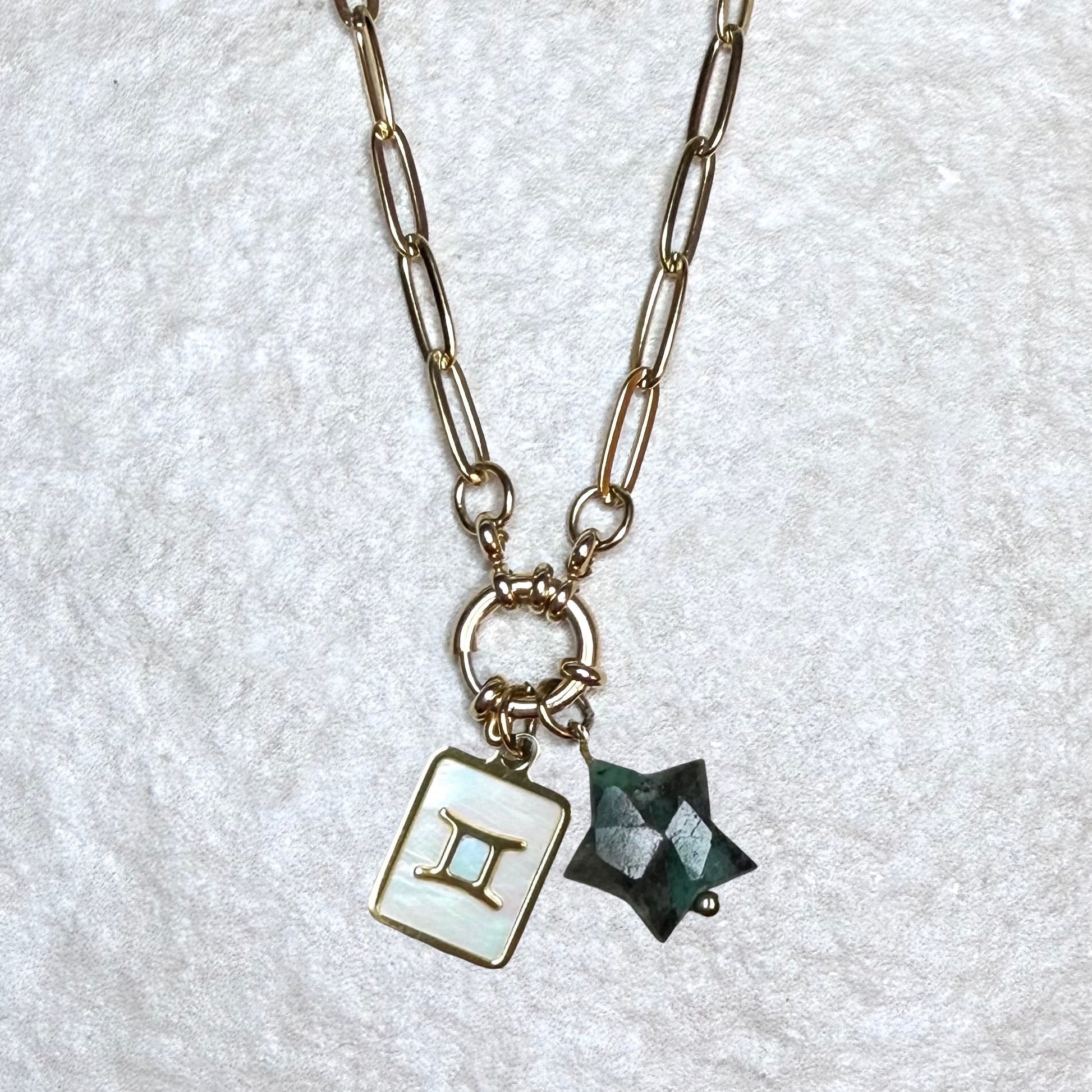Star Sign & Birthstone Necklace (Statement Paperclip Chain)